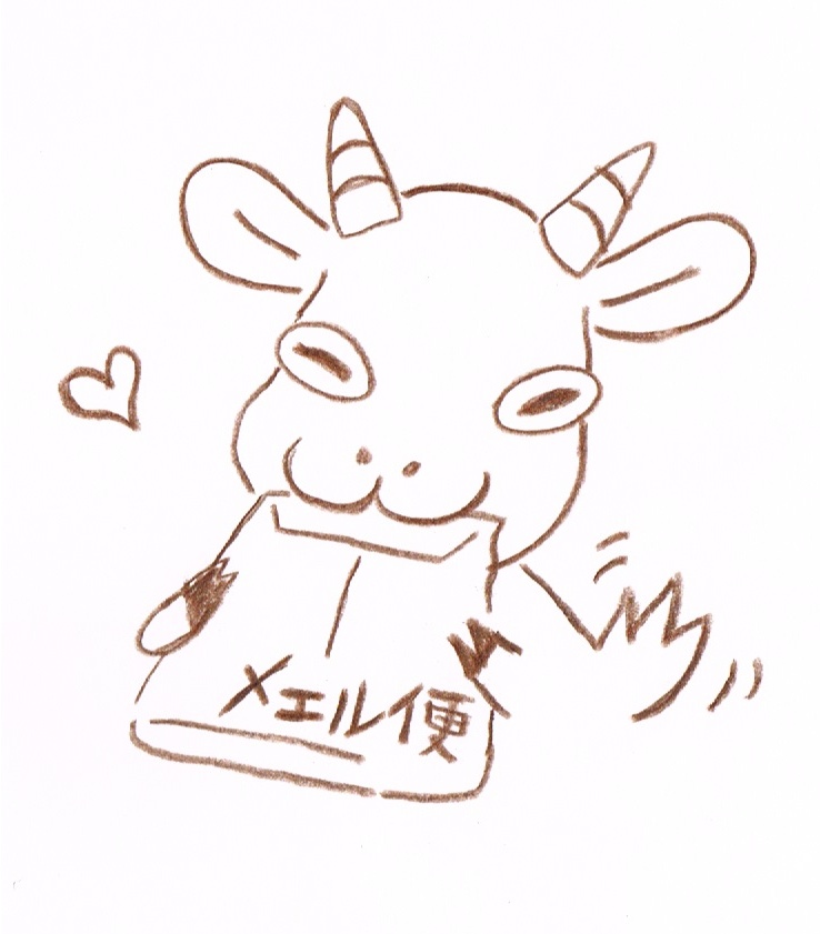 2004年、なちゅらる宇宙人のホームページを初めて作った際に描いた絵です。当時、デザインを担当してくれたaibondさんが、アイコンをさわるとイラストが動くトップページにしてくれ、とても可愛く仕上げてくださり気に入っていました。このやぎも、メェル便を見てプルプル→がまんしきれず食べちゃう!というふうに動いていました。